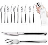 AMEFA sztućce Chuletero zestaw 12 sztućce STEKOWE komplet 6 widelec 6 nóż z ząbkami do pizzy steków schabowego mięsa na 6 osób