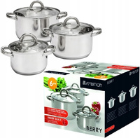 Ambition 6 garnki Berry stalowe nierdzewne tradycyjne na indukcję gaz komplet garnków ze stali nierdzewnej