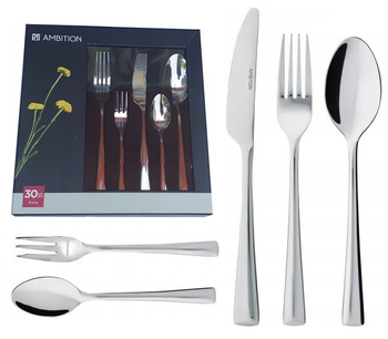 Sztućce Ambition Siena 30 sztuk nierdzewne zestaw dla 6 osób 24 + 6 widelczyki do ciasta tortu komplet nowoczesne