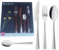 ( ilość produktów: 8 )Sztućce Ambition Siena 24 sztuki zestaw dla 6 osób nierdzewne komplet obiadowe nowoczesne proste bez wzoru komplet
