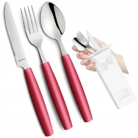Amefa sztućce dziecięce zestaw 3 dla dziecka kolorowe wiśniowe czerwone Pixel nóż widelec łyżka bez niklu do przedszkola
