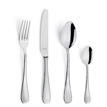 Sztućce Amefa Sierra 4 szt. obiadowe zestaw na 1 osobę nierdzewne nowoczesne z tłoczonym wzorem do zmywarki stal 18/10