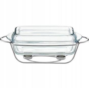 AMBITION SAULE naczynie żaroodporne szklane do zapiekania , serwowania na stół 2 podgrzewacze na stelażu 3,9 L