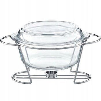 AMBITION SAULE naczynie żaroodporne szklane do zapiekania , serwowania na stół z podgrzewaczem na stelażu 4 L