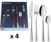 Sztućce Ambition Roma 72 elementy nierdzewne bez wzoru sztućce w WALIZCE zestaw z widelczykami i dodatkami komplet dla 12 osób