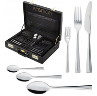 Sztućce Ambition Napoli komplet 72 sztuki nierdzewne z wzorem fala zestaw na 12 osób sztućce w walizce neseserze