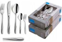 Sztućce Amefa Helma zestaw 24 elementy dla 6 osób nierdzewne klasyczne z wzorem fali do obiadu kolacji śniadania 18/10