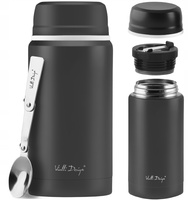 CZARNY GRAFITOWY TERMOS FUORI ZUPĘ ŻYWNOŚĆ NAPOJE SZCZELNY 0,75 LIT+ ŁYŻKA