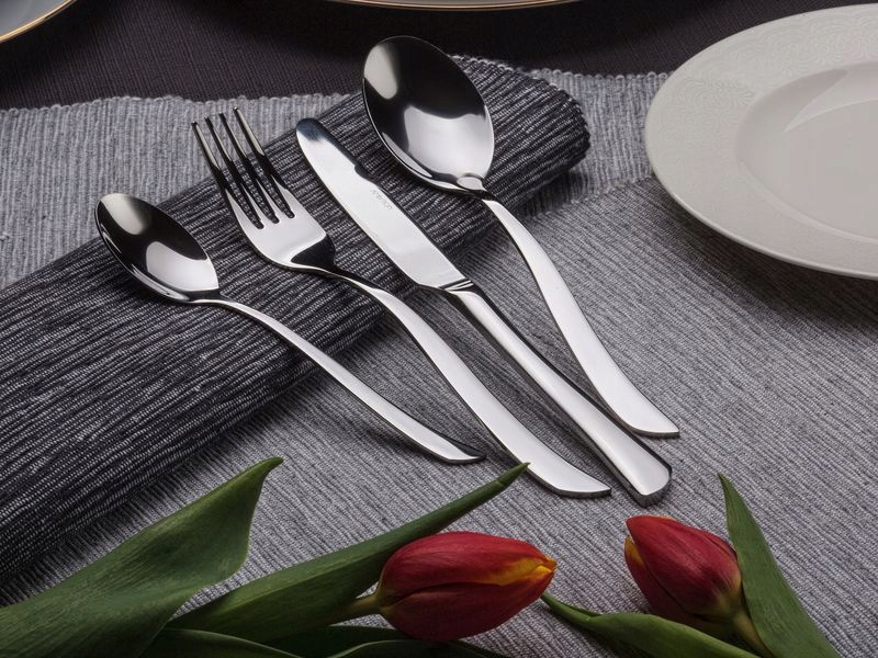 ORYGINALNY, NIEREGULARNY KSZTAŁT SZTUĆCÓW Z PEWNOŚCIĄ ODRÓŻNI TWÓJ STÓŁ OD INNYCH. PROSTA, ALE NIEBANALNA FORMA RĄCZKI DODAJE ELEGANCJI I NOWOCZESNEGO CHARAKTERU.