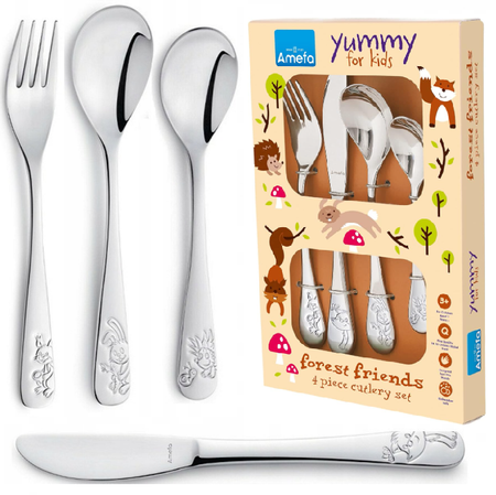 Amefa 4 sztućce dla dziecka zestaw Forest Friends Leśne Zwierzęta komplet dziecięcy nóż widelec łyżka widelec łyżeczka 18/10