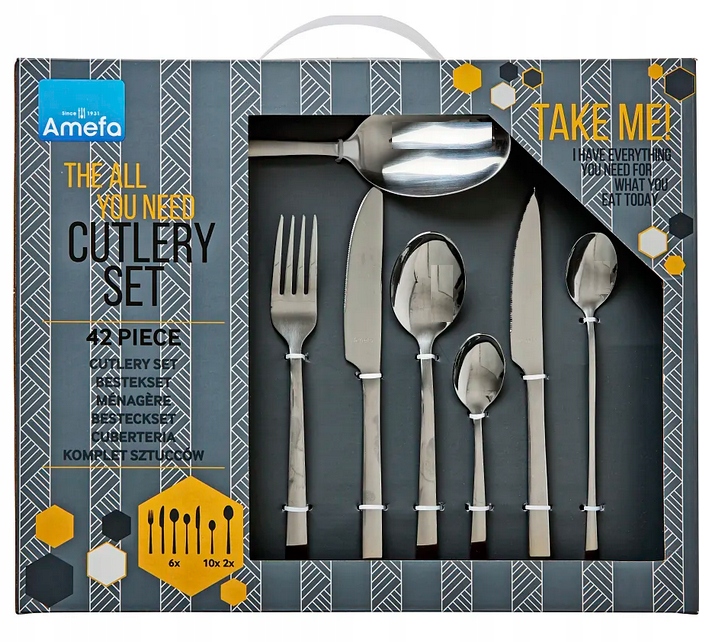 Zestaw sztućców obiadowych, nierdzewnych dla 6 osób / 42 sztuk