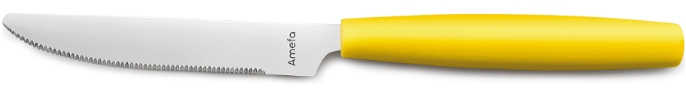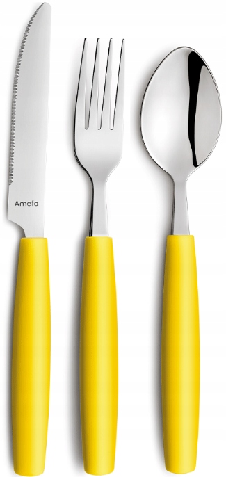Amefa sztućce dziecięce zestaw 3 dla dziecka kolorowe zółte Pixel nóż widelec łyżka bez niklu do przedszkola