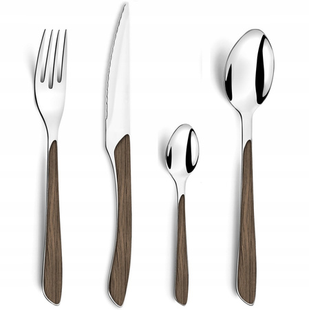 Amefa Sztućce Eclat Nature 48 elementów zestaw dla 12 osób obiadowe bez niklu efekt ciemnego drewna