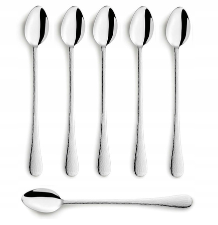 Sztućce Amefa Sierra nowoczesne długie łyżeczki do kawy latte, lodów, deserów, koktajli, nierdzewne, z tłoczonym wzorem, do zmywarki, zestaw dla 6 osób.