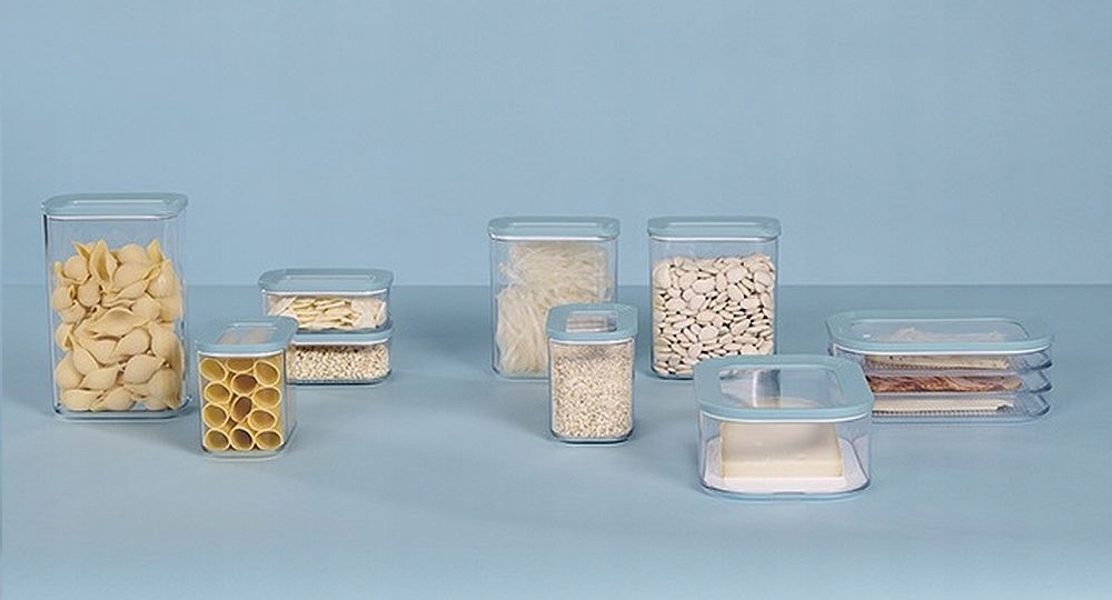 - Możliwość piętrowego ułożenia pojemników pomaga zaoszczędzić i lepiej zagospodarować miejsce w lodówce lub szafce kuchennej.