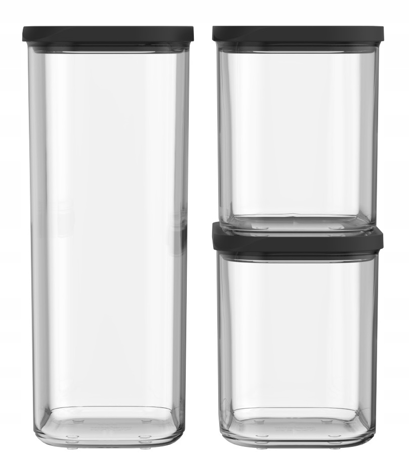 - Możliwość piętrowego ułożenia pojemników pomaga zaoszczędzić i lepiej zagospodarować miejsce w lodówce lub szafce kuchennej.