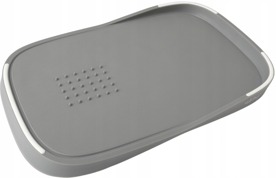 - Bardzo przydatna funkcją deski jest to, że jedna ze stron jest ustawiona pod skosem. Dzięki temu, że powierzchnia jest nachylona pod niewielkim kątem, soki oraz okruszki zbierają się na dole deski, bez konieczność przerywania krojenia , aby je usunąć. Na koniec pracy można przechylić róg i umyć wszystko pod bieżącą wodą.