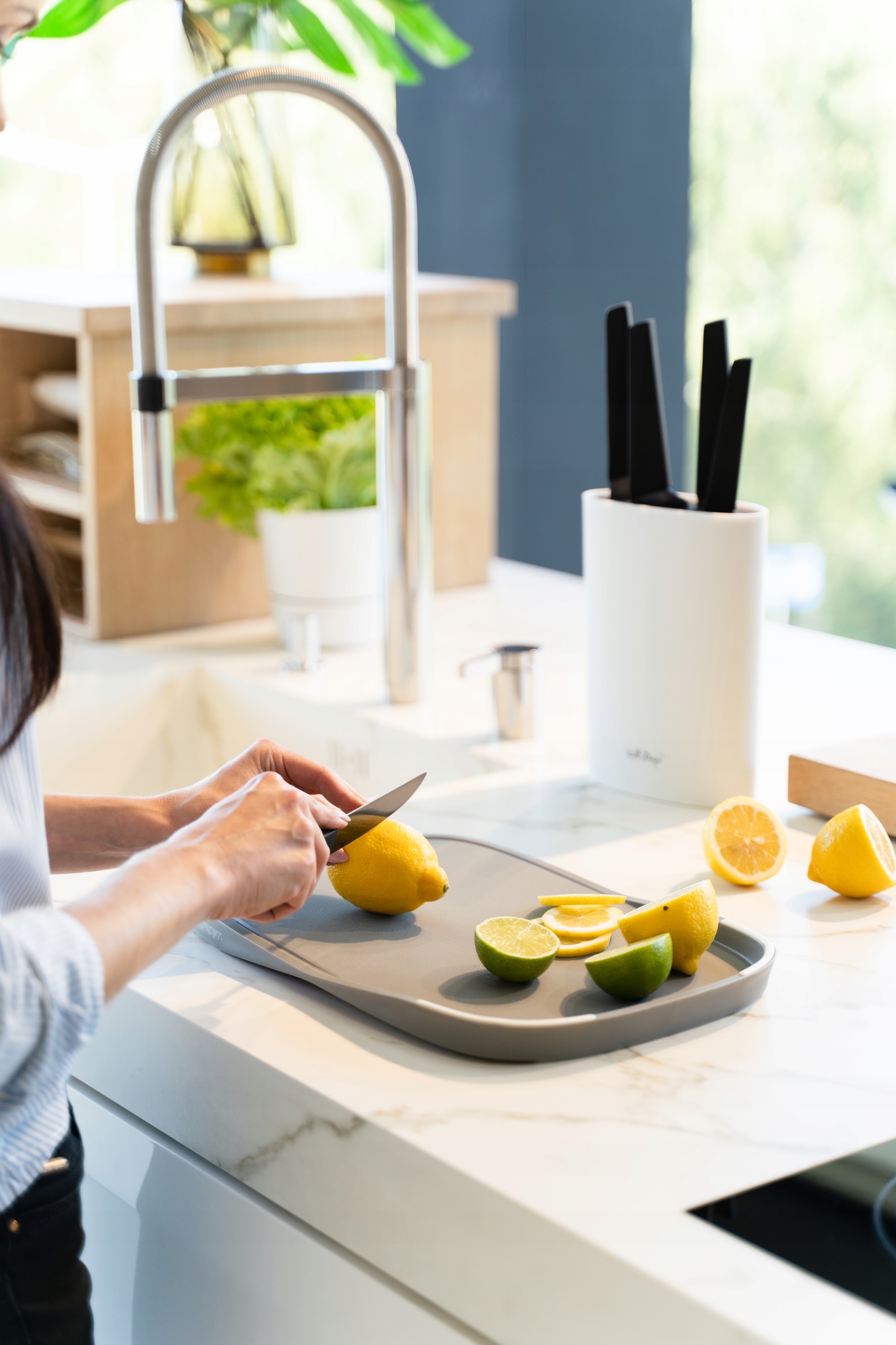 Praktyczna dwustronna deska do krojenia serii Livio to niezbędny element pomagający w codziennych pracach kuchennych.