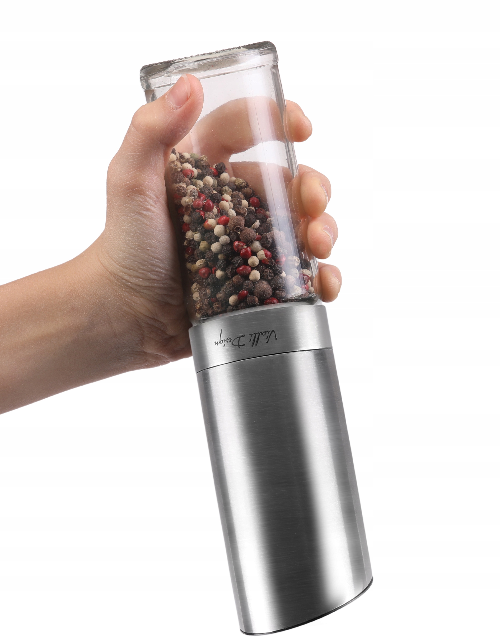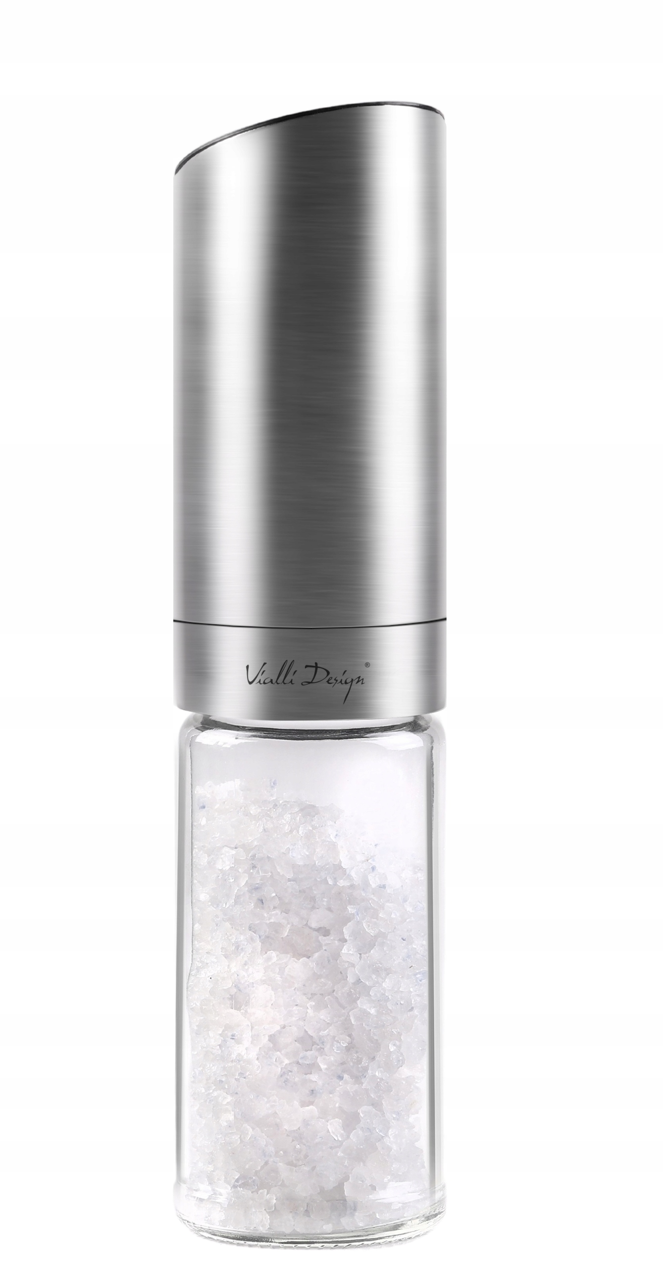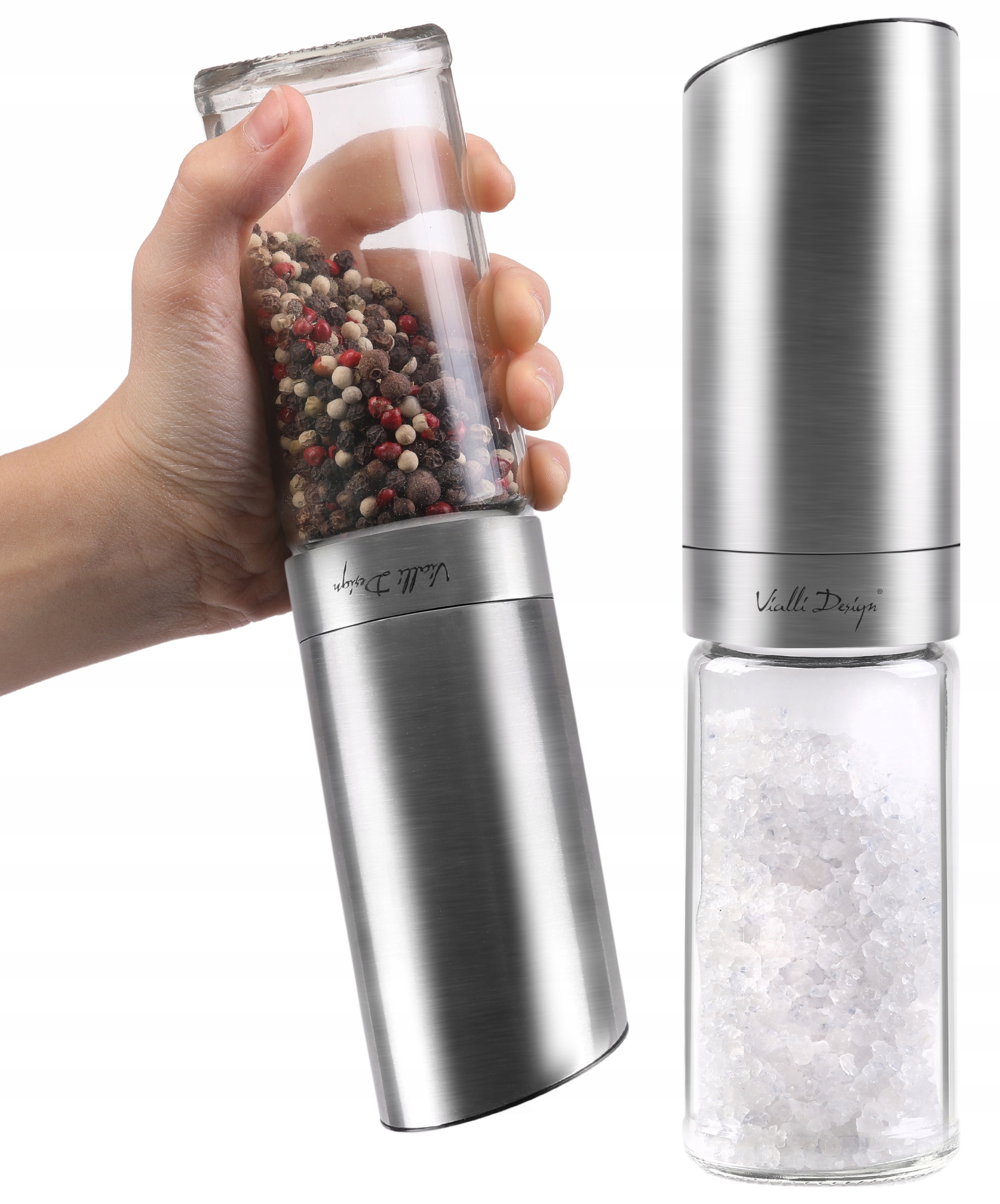 VIALLI MŁYNEK ELEKTRYCZNY GRAWITACYJNY CERAMICZNY PIEPRZU SOLI SREBRO 22,5