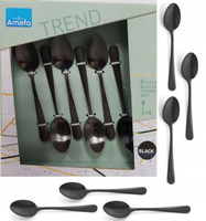Amefa sztućce Austin zestaw 6 długie łyżeczki do kawy latte lodów deserów CZARNE komplet dla 6 osób nierdzewne bez wzoru 18/0