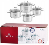 GERLACH BRAVA zestaw garnków stalowych z pokrywkami na gaz indukcję do zmywarki 8 elementów