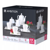 Ambition porcelana Kubiko biała serwis do kawy herbaty nowoczesny kwadratowy zestaw 17 elementów dla 6 osób
