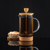 Ambition zaparzacz Natural szklany tłokowy dzbanek do kawy herbaty ziół z pokrywką z drewna bambusowego i korkową podstawką 1l
