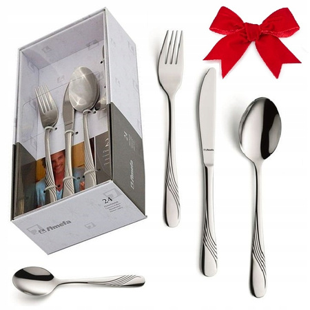 Sztućce Amefa Felicia zestaw 24 sztuki komplet dla 6 osób do obiadu kolacji śniadania z wzorem fali pudełko prezentowe