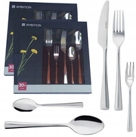 AMBITION NAPOLI zestaw 50 sztućce nierdzewne na 12 osób 48 elementów + komplet widelec łyżka do sałatek połysk