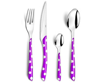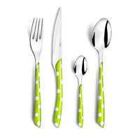 Sztućce Amefa Eclat Pois 24 elementy zestaw dla 6 osób nowoczesne zielone w kropki obiadowe śniadaniowe do kolacji bez niklu